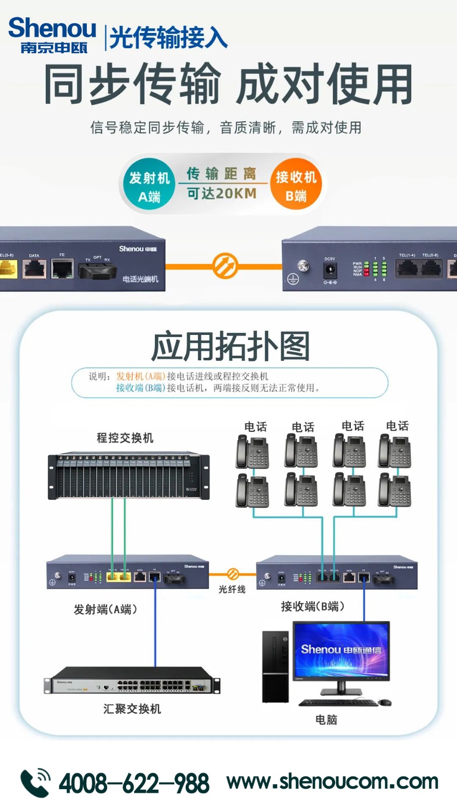 申甌通信的電話光端機(jī),它采用先進(jìn)的光纖技術(shù),具有高速、穩(wěn)定、低延遲等優(yōu)點(diǎn),可以滿足各種通信需求。是一款高品質(zhì)、高性能的通信設(shè)備。同時(shí)還具有多種功能,如來電顯示、傳真功能、網(wǎng)絡(luò)連接等,可以幫助您更加高效地進(jìn)行工作和生活。我們公司一直致力于為客戶提供最好的產(chǎn)品和服務(wù)。