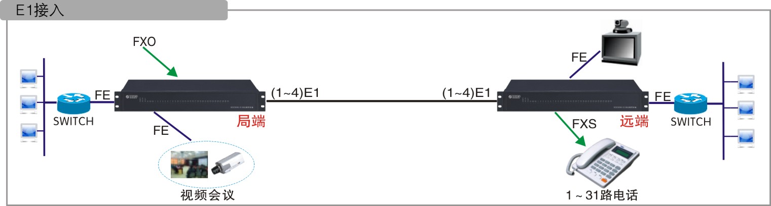 通過多E1傳輸時,采用MP技術(shù)(線路負(fù)載平衡)將多E1信道捆綁傳輸各種業(yè)務(wù)
