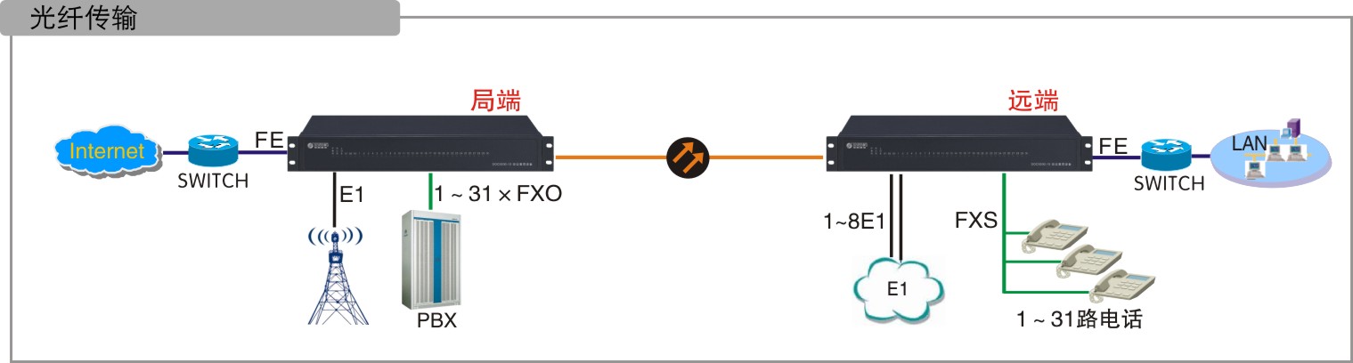 多種傳輸方式:包括E1傳輸、光纖傳輸、HDSL傳輸,點對點/星型/鏈形結(jié)構(gòu)